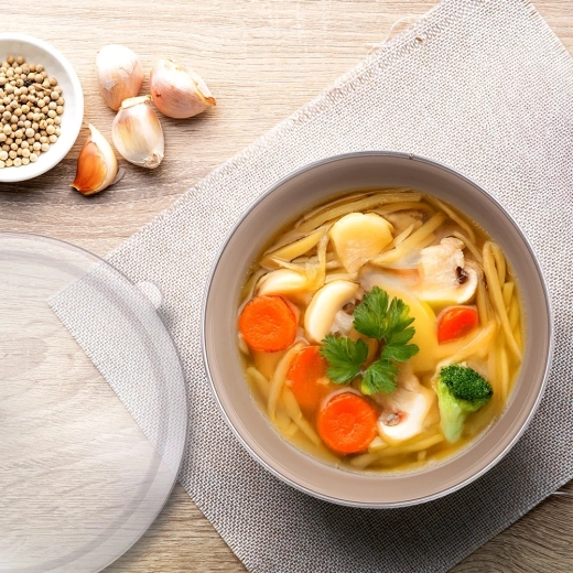 - Inhoud 1,3 l – ideaal formaat voor soepen, bijgerechten, salades en tussendoortjes.
