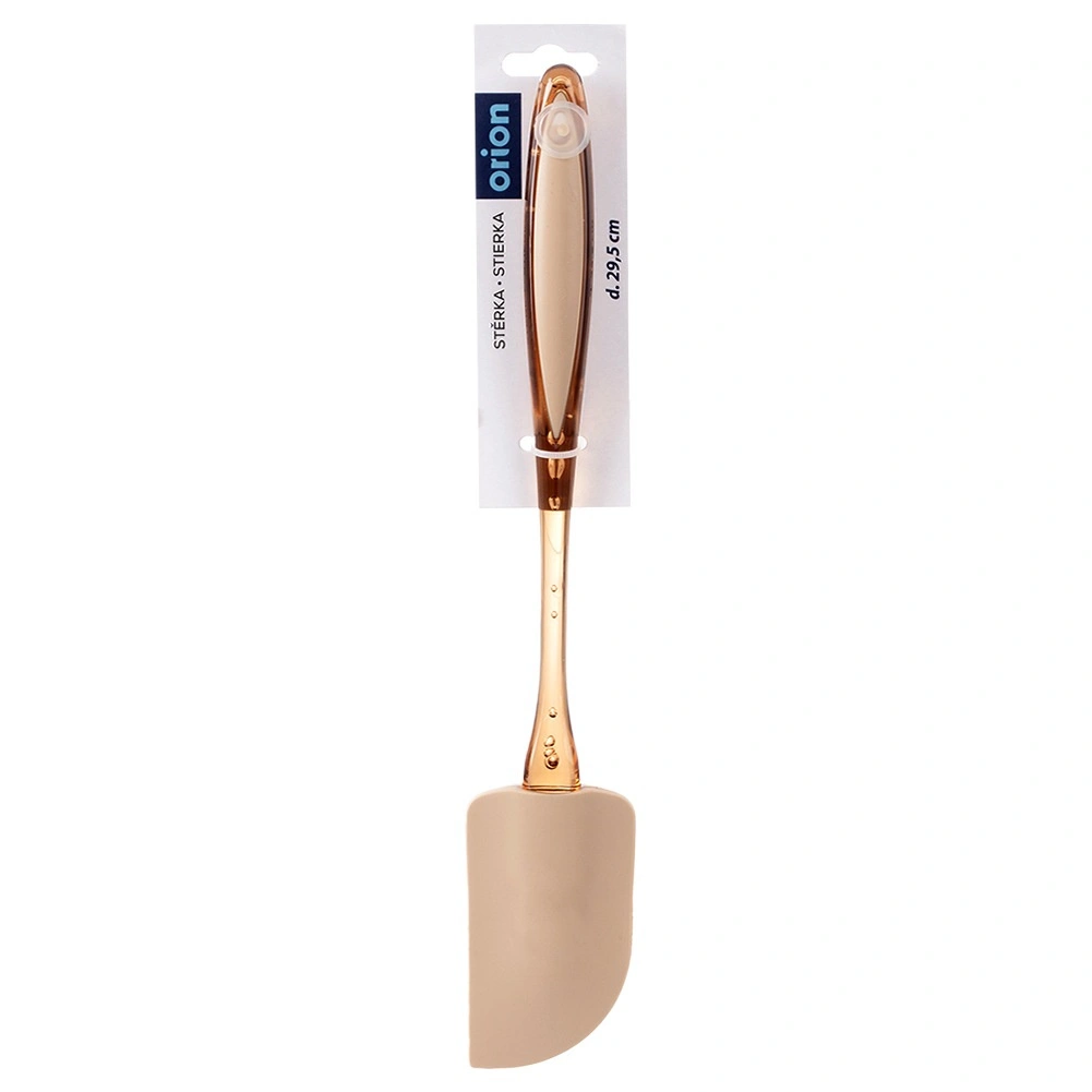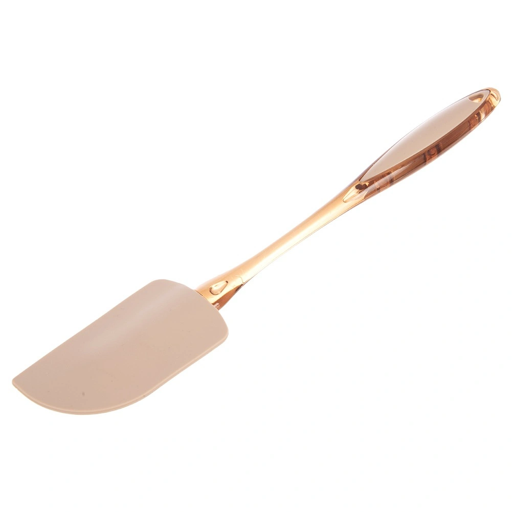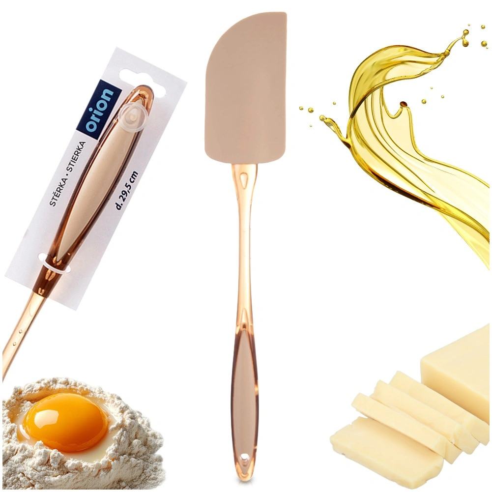 De veelzijdige siliconen keukenspatel in een elegante beige kleur is ideaal voor het mengen, scheppen en uitstrijken van crèmes, glazuur en deeg. De flexibele kop volgt voorzichtig de vorm van de kom en schraapt resten perfect weg van de wanden zonder het oppervlak te beschadigen.
