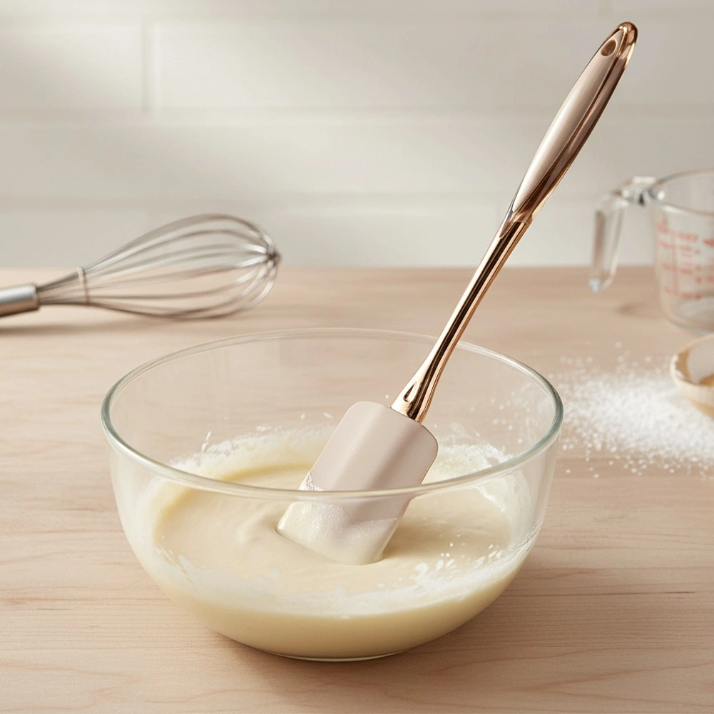 De zachte en veerkrachtige siliconen vegen crèmes, glazuur en deeg moeiteloos van de komwanden zonder het servies te krassen. Ideaal voor bakken en het bereiden van desserts.