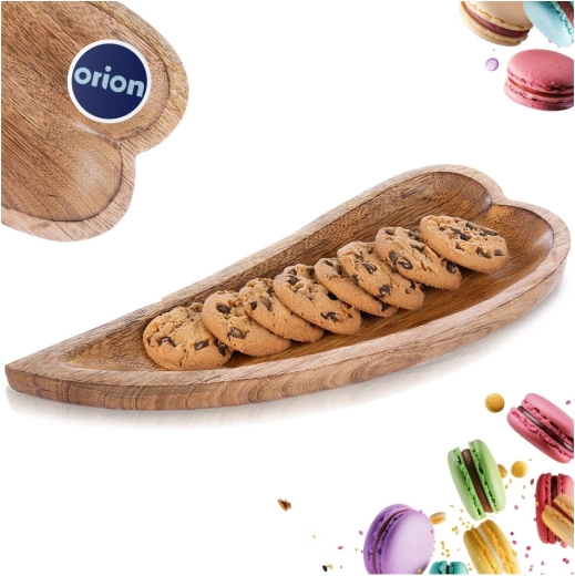 Stijlvolle serveerschaal van natuurlijk mangohout in een elegant blad-/hartvormig design, ideaal voor het serveren van snacks, desserts en voorgerechten. Dankzij de afmetingen 38 × 15,5 × 3,5 cm is hij perfect voor noten, koekjes of fruit en siert hij tegelijk elke tafel. Natuurlijk mangohout, duurzame afwerking en unieke houttekening geven uw tafelschikking een rustieke én moderne touch.
