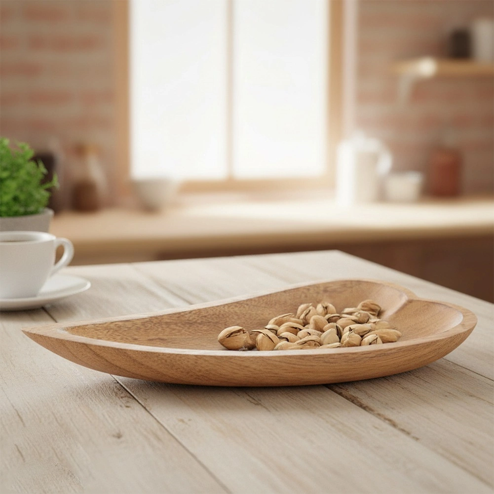 De langgerekte, blad-/hartvorm en de zacht afgeronde randen zijn ideaal voor noten, koekjes, fruit en tapas en werken tegelijk decoratief.