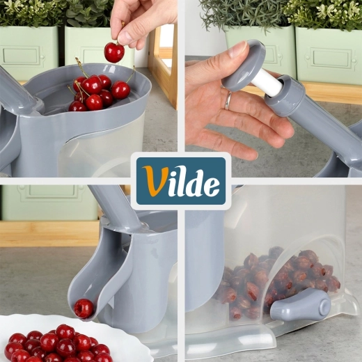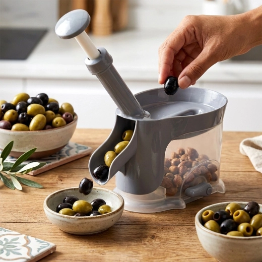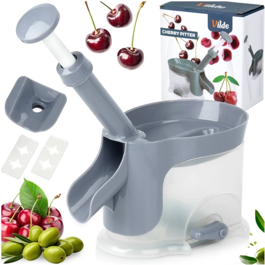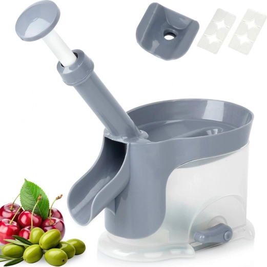 Bespaar tijd en moeite bij het verwerken van fruit. Deze ontpitter in grijs en transparant combineert snel ontpitten met maximale stabiliteit dankzij de sterke zuignap. Het ontpitte fruit glijdt soepel in de kom, terwijl de pitten in de geïntegreerde bak worden verzameld, zodat de keuken schoon blijft.