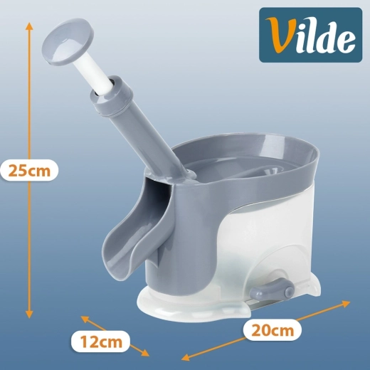 Het apparaat is gemaakt van hoogwaardige, duurzame kunststof en de onderdelen zijn eenvoudig te demonteren en te wassen – inclusief de mogelijkheid tot reinigen in de vaatwasser. In de verpakking vindt u ook reserve rubberen inzetstukken voor een langere levensduur. De compacte afmetingen van 20 × 12 × 25 cm besparen ruimte en maken opbergen gemakkelijk.