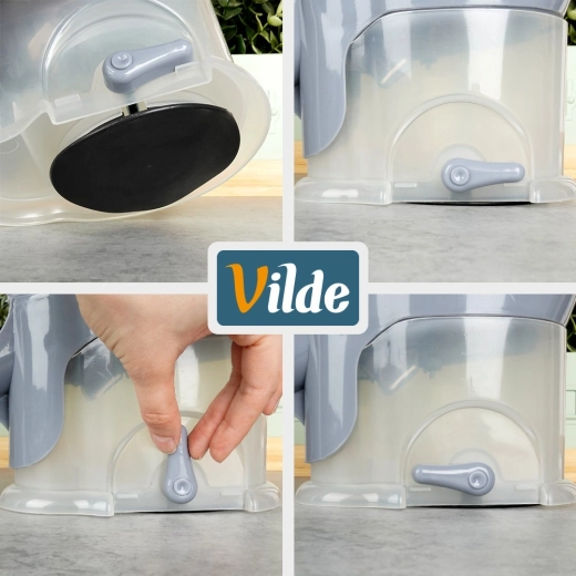 Pitten en sap worden opgevangen in het transparante reservoir. Zo minimaliseert u rommel op het aanrecht en kunt u de bak na gebruik eenvoudig legen.