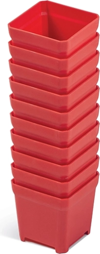 Met deze set van 10 plastic bakjes met afmetingen 5 × 5 × 5 cm houd je schroeven, spijkers, moeren en andere kleinigheden altijd netjes geordend. Het slijtvaste materiaal garandeert een lange levensduur, zelfs bij frequent gebruik, en de rode uitvoering maakt het makkelijker om de benodigde onderdelen snel te vinden.