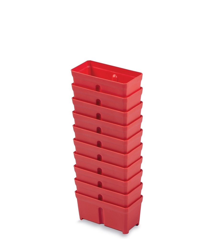 Set van plastic gereedschapsbakjes, 10 stuks, rood, 10,5 × 5 × 5 cm