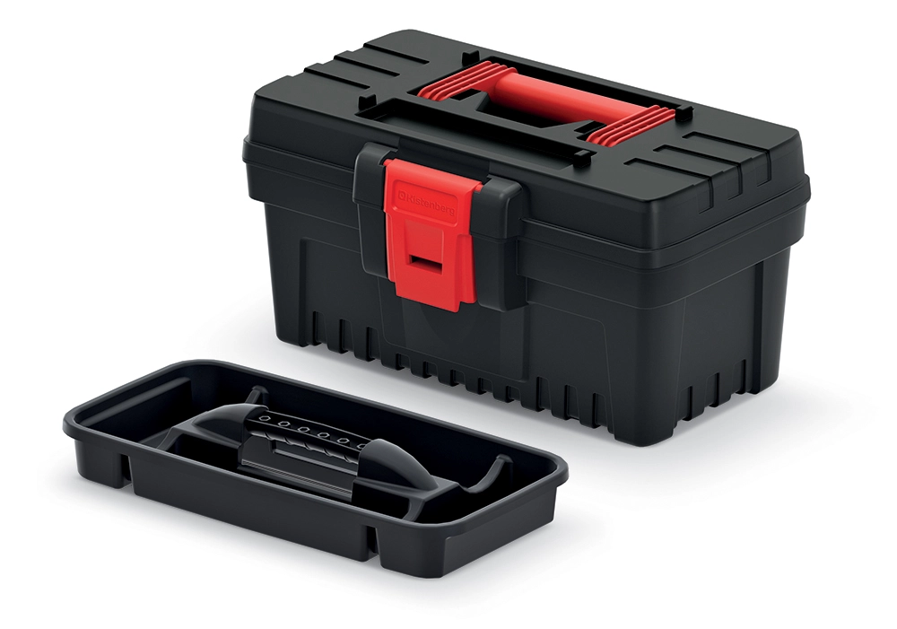 De praktische en duurzame Kistenberg Dark 30 gereedschapskoffer biedt een stevige constructie van een polymeerblend, een ergonomisch ABS-handvat en veilige kunststofsluitingen. Dankzij de compacte afmetingen van 26,9 × 17,7 × 15,5 cm en een draagvermogen tot 10 kg is hij ideaal voor zowel doe-het-zelvers als professionals die hun gereedschap altijd overzichtelijk geordend en makkelijk draagbaar willen hebben.