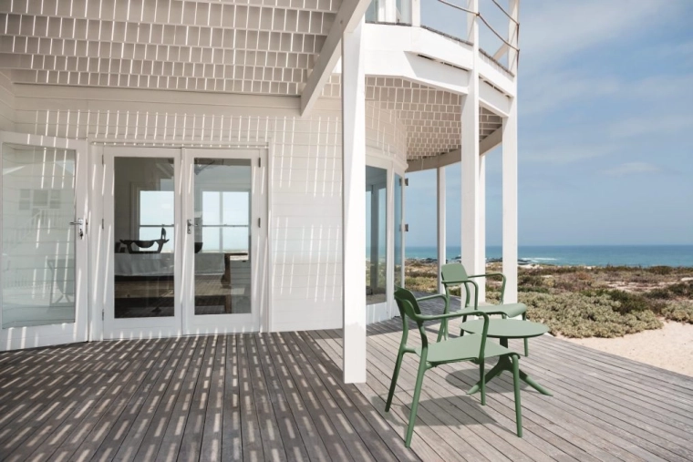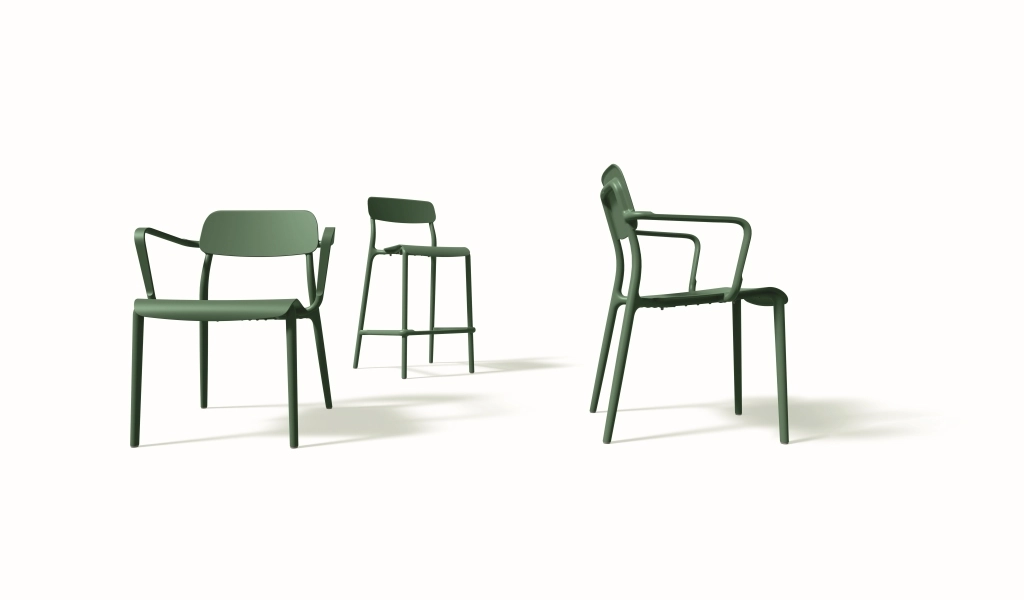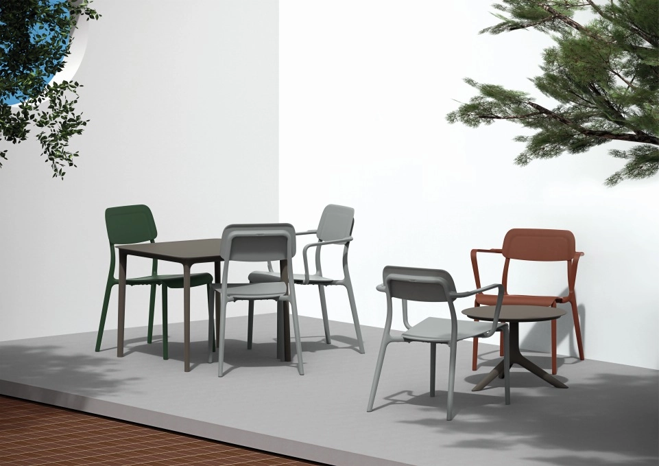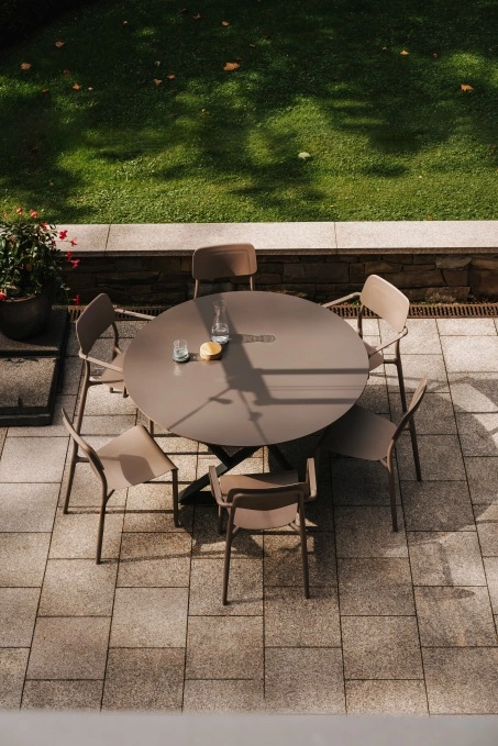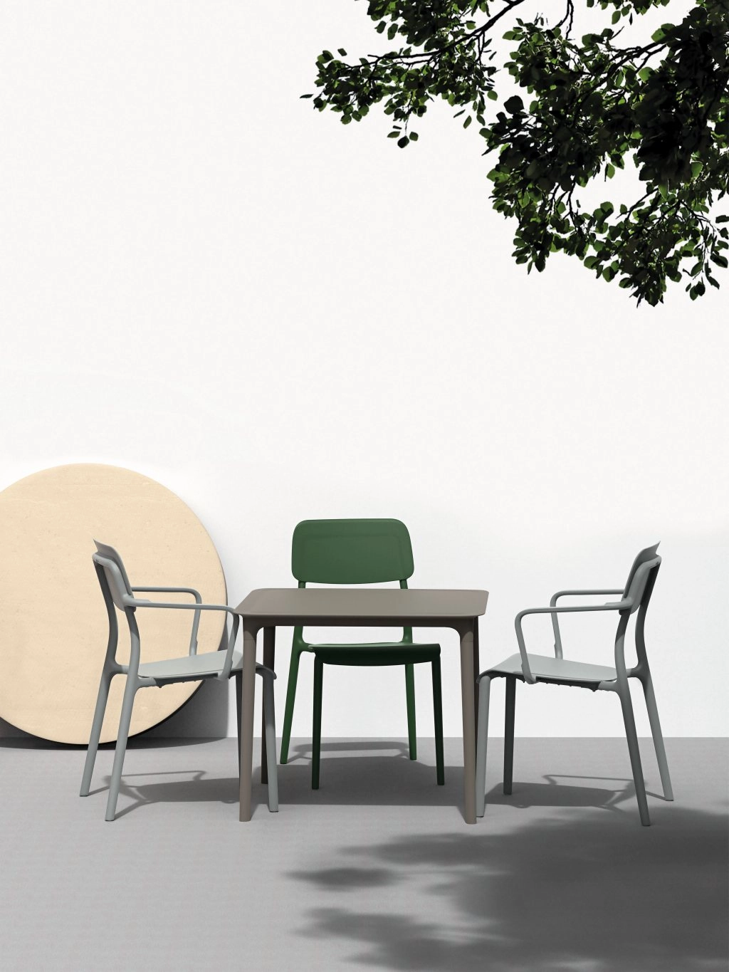 Geïntegreerde armleuningen en een ergonomisch gevormde zitting ondersteunen een correcte lichaamshouding en comfort, ook bij langer zitten – ideaal aan tafel of op het terras.