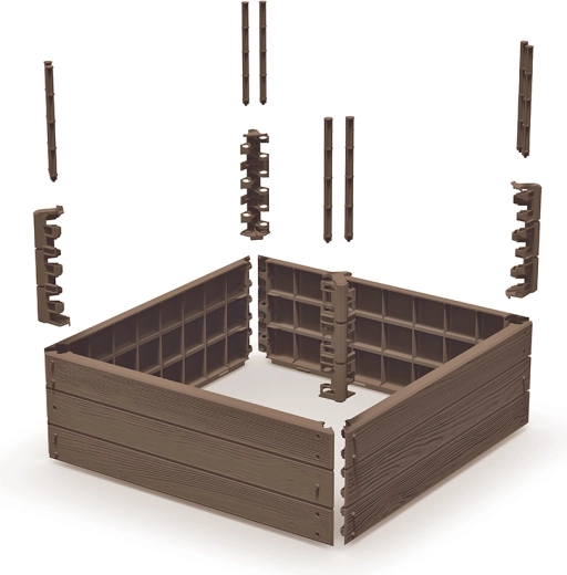 Creëer overzichtelijke en vruchtbare bedden in enkele minuten. BASE WOODY ECO WOOD combineert de look van natuurlijk hout met de voordelen van duurzaam kunststof – het roest niet, neemt geen vocht op en is bestand tegen mechanische belasting, UV-straling en wisselende weersomstandigheden. De open bodem zorgt voor direct contact met de grond, betere drainage en beluchting van de wortels.