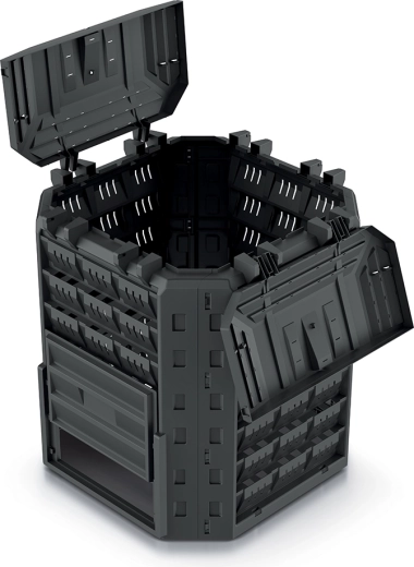 De Prosperplast COMPOBOX 310 l composter is een betrouwbare oplossing voor particuliere tuinen en helpt keuken- en tuinafval om te zetten in hoogwaardige compost. De modulaire constructie maakt snelle en intuïtieve montage zonder gereedschap mogelijk, terwijl duurzaam plastic een lange levensduur garandeert, zelfs bij buitengebruik.