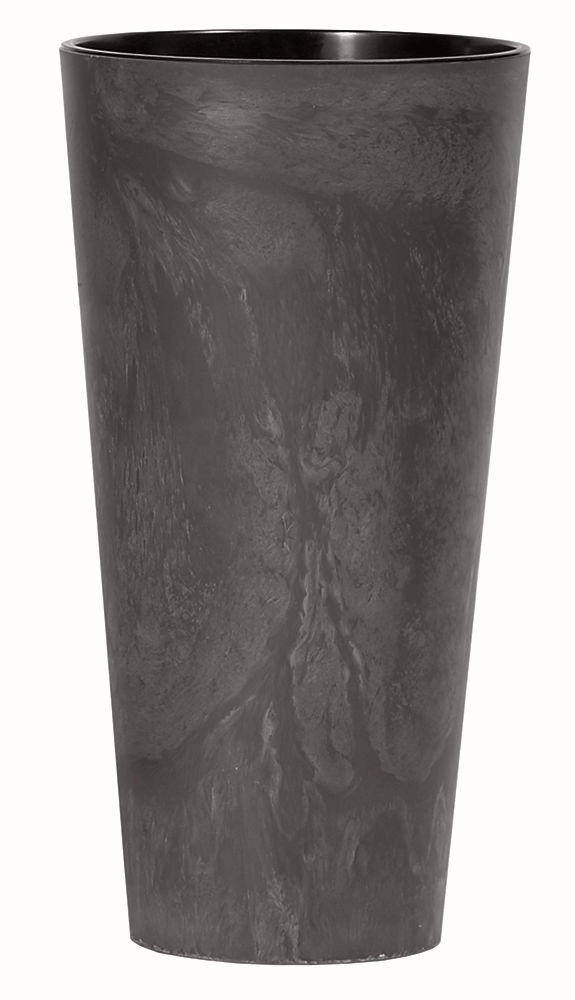 De Tubus Slim Beton Effect bloempot in antraciet combineert de industriële look van beton met het gebruiksgemak van lichte en duurzame kunststof. Dankzij het slanke profiel past hij perfect in smallere ruimtes, op vensterbanken of bij de voordeur en vult hij zowel moderne als minimalistische omgevingen elegant aan.