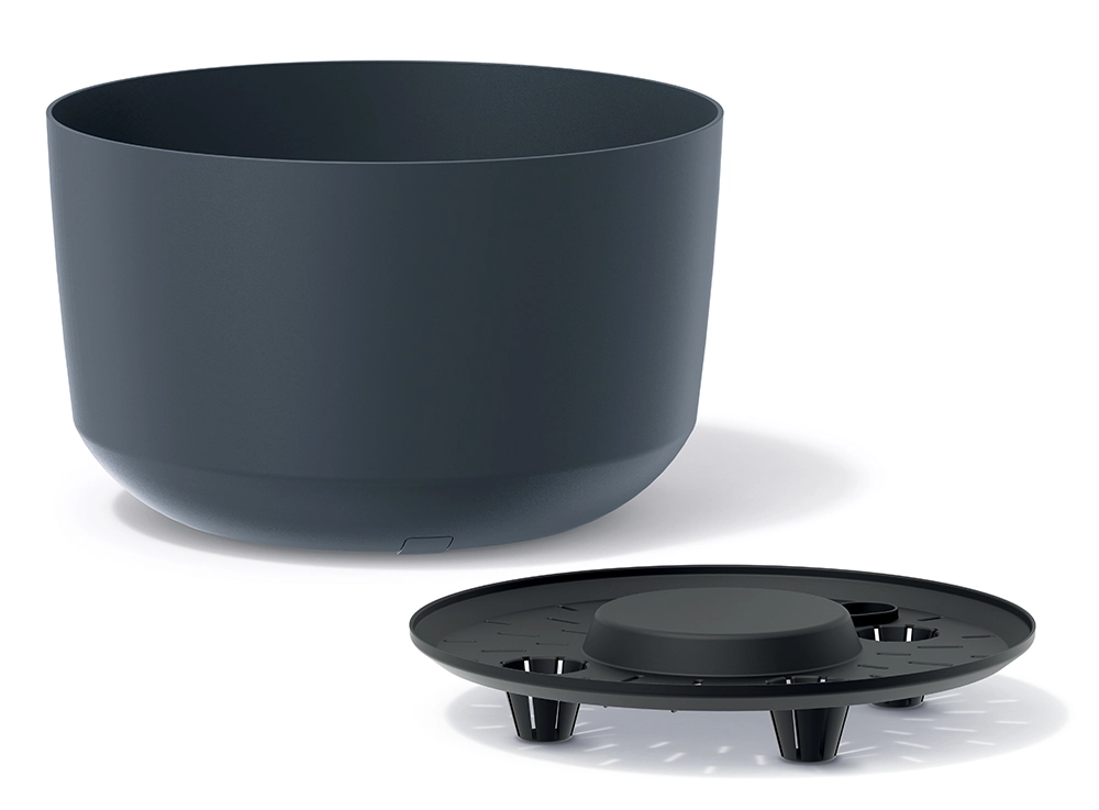Dankzij de productie van gerecycled plastic is de bloempot licht, duurzaam en tegelijkertijd milieuvriendelijk. Hij kenmerkt zich door een lange levensduur en weerstaat regen, vorst en zonlicht, waardoor hij ideaal is voor gebruik binnen en buiten.