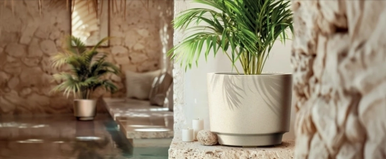 De constructie van hoogwaardige kunststof zorgt voor bestendigheid tegen UV-straling en vorst, waardoor de pot zijn kleur en vorm langdurig behoudt. Het lage gewicht maakt verpotten en het aanpassen van arrangementen eenvoudig. Voor buitengebruik kun je de bodem doorboren voor de afvoer van overtollig water. Het materiaal is bovendien volledig recyclebaar en draagt zo bij aan een duurzaam huis.