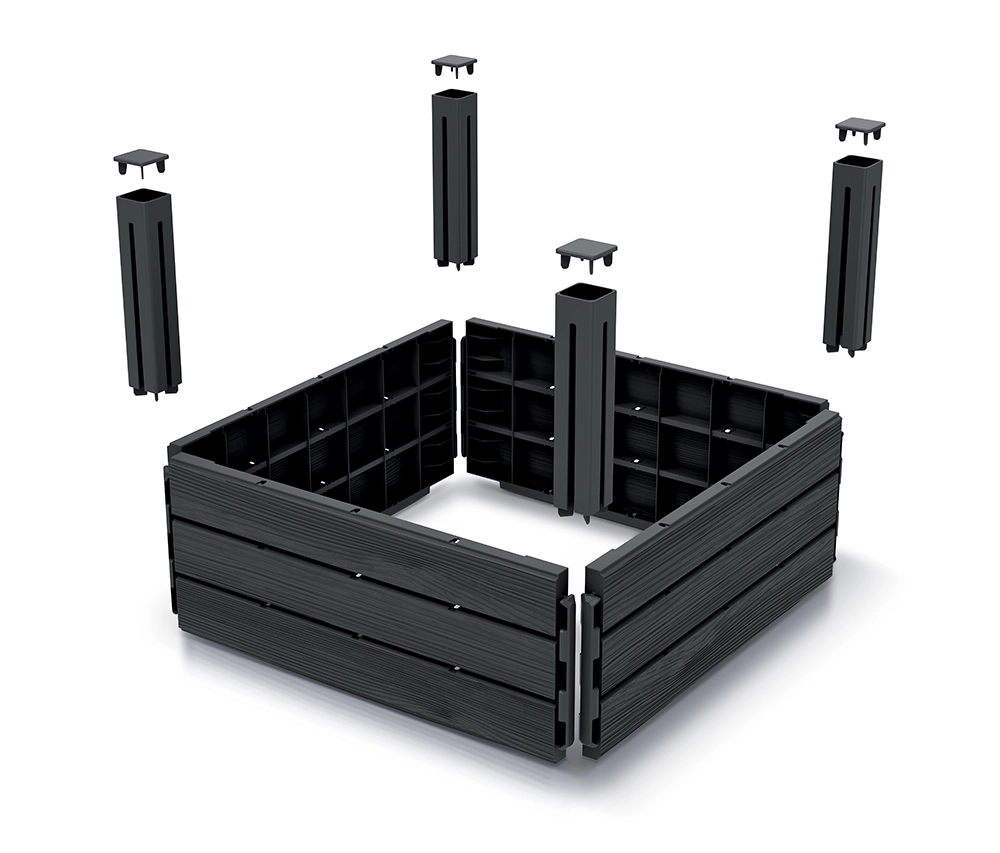Praktische verhoogde kweekbak in antraciet maakt het telen van groenten, kruiden en bloemen in de tuin, op het terras of balkon eenvoudiger. Dankzij de verhoogde constructie spaart u uw rug, het modulaire systeem maakt eenvoudige uitbreiding zonder gereedschap mogelijk en het duurzame plastic met UV- en weerbescherming zorgt voor een lange levensduur.