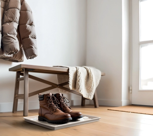 neerzetten van schoenen, verplanten van planten, bescherming van oppervlakken tegen vuil en vocht