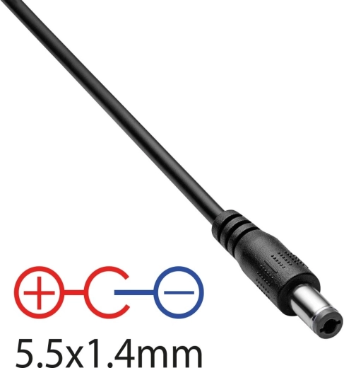 - Eenvoudige compatibiliteit – standaard coaxiale DC-connector 5,5 × 1,4 mm.