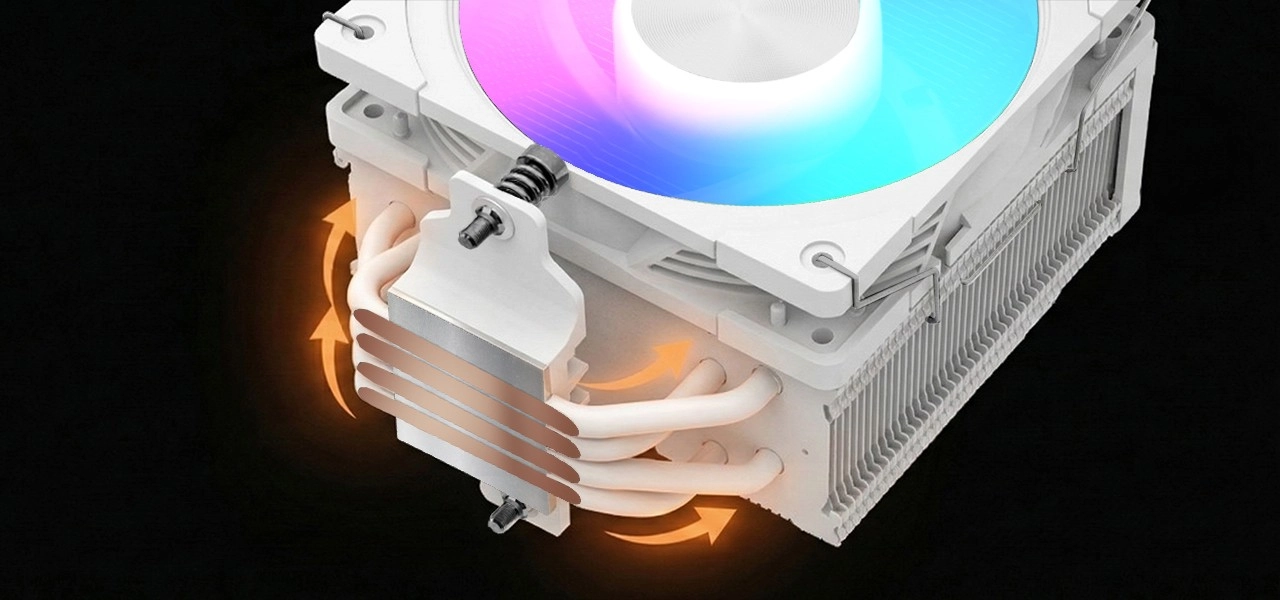 Elegant wit design met aluminium topplaat en ARGB-LED-strip verandert uw pc in een visuele show. Nauwkeurig ontworpen aluminium lamellen zorgen voor optimale luchtstroom en verlagen de CPU-temperaturen, wat de levensduur en stabiliteit verlengt.