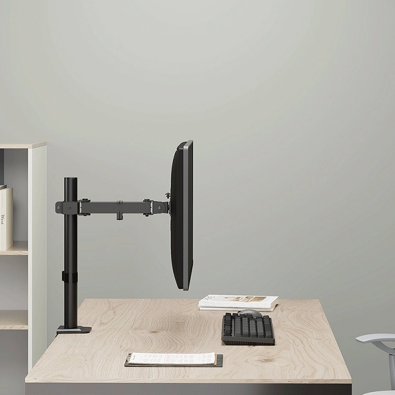 De houder maakt het mogelijk om de monitor precies in de ideale ergonomische positie te plaatsen. Dankzij de geleidestang van 40,8 cm en de scharnierende arm met een reikwijdte tot 20,2 cm pas je eenvoudig hoogte, diepte en positie van het scherm aan. Het kantelbereik van +/− 45°, zwenken +/− 90° en rotatie van 360° (pivot) zorgen voor comfortabel wisselen tussen landschap en portret.