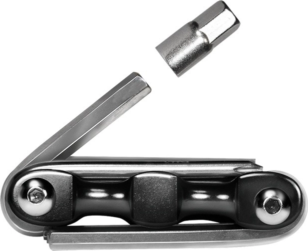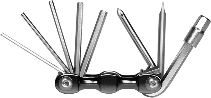 Praktische uitklapbare tools dekken de meest voorkomende ingrepen: aandraaien van stuurpen, zadelpen, remklauwen of schakeling. De compacte behuizing met zekere grip zorgt voor comfortabel werken, ook met handschoenen.