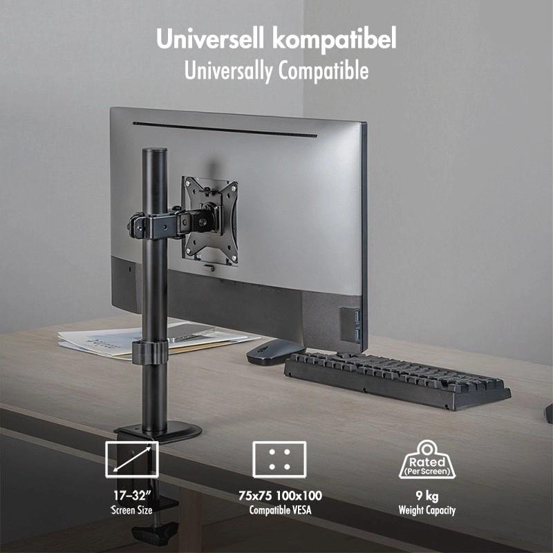 - Compatibel met 17–32" en draagvermogen 9 kg voor de meeste gangbare monitoren.