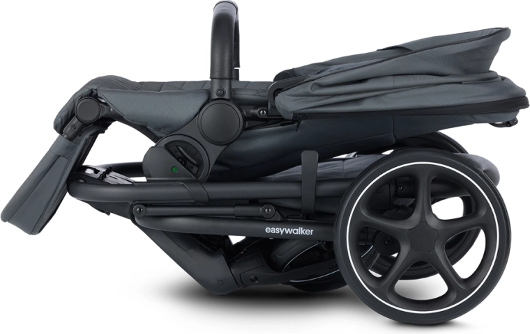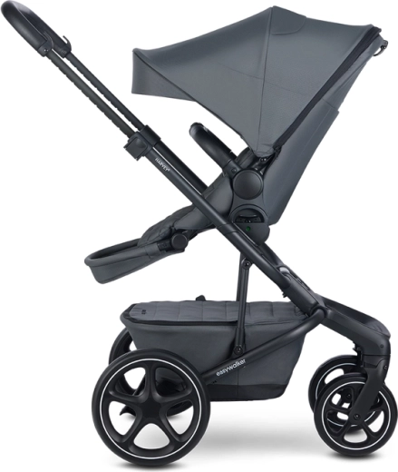 Grote achterwielen, zwenkende voorwielen en hoogwaardige vering zorgen voor een vloeiende rit in de stad en in het park. De kinderwagen is eenvoudig met één hand te besturen en houdt koers, zelfs op oneffenheden.
