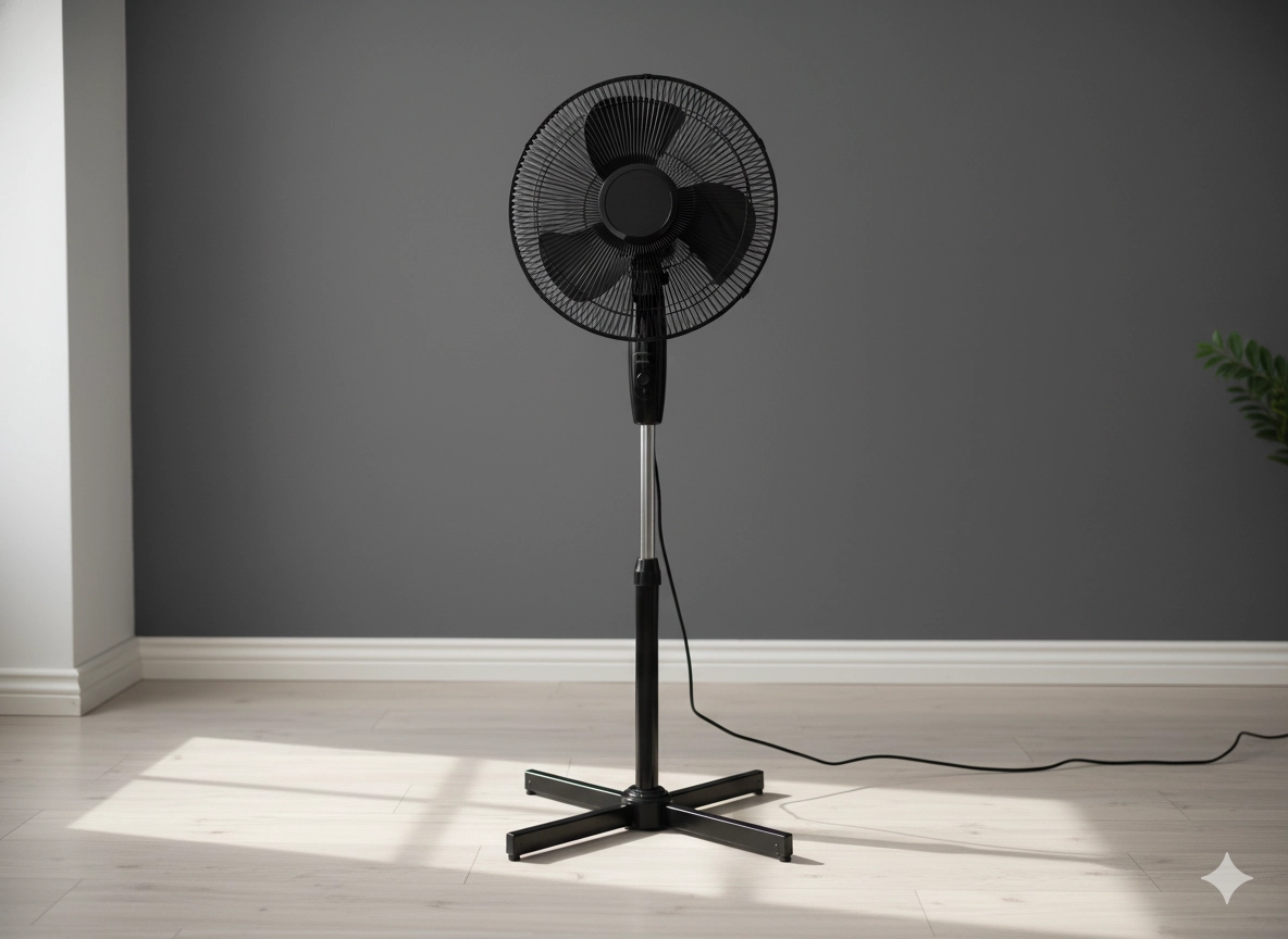 De elegante zwarte staande ventilator biedt snelle verlichting op warme dagen. Dankzij de diameter van 41 cm circuleert hij de lucht efficiënt, terwijl de 3-traps snelheidsregeling en de verstelbare helling je in staat stellen de luchtstroom precies te richten waar nodig. De stille werking en moderne look maken hem ideaal voor woonkamer, slaapkamer en kantoor.