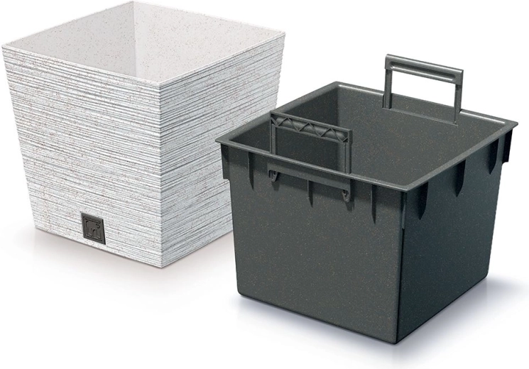 De stijlvolle vierkante bloempot Furu Square Low Eco Wood met praktische inzet in modern wit is ideaal voor binnen en overdekte buitenruimtes. Gemaakt van gerecycled ECO-materiaal, met een laag profiel, tijdloze houtlook en eenvoudig onderhoud.