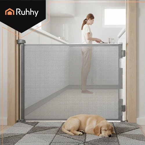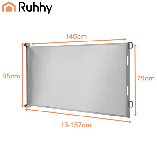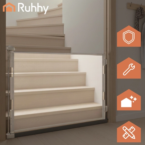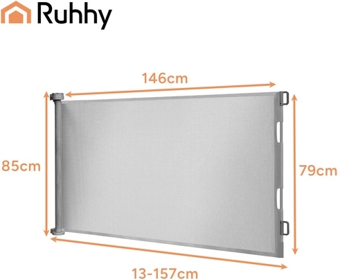Het praktische rolgordijn-hekje van RUHHY biedt soepel uitschuiven tot 157 cm, zodat je het eenvoudig aanpast aan smalle en brede openingen. De drempelloze oplossing vermindert struikelgevaar en na het oprollen neemt het minimaal ruimte in. Dankzij de combinatie van een PVC-rolgordijn, aluminium buizen en stevige kunststoffen is het hekje stabiel en duurzaam voor dagelijks gebruik.