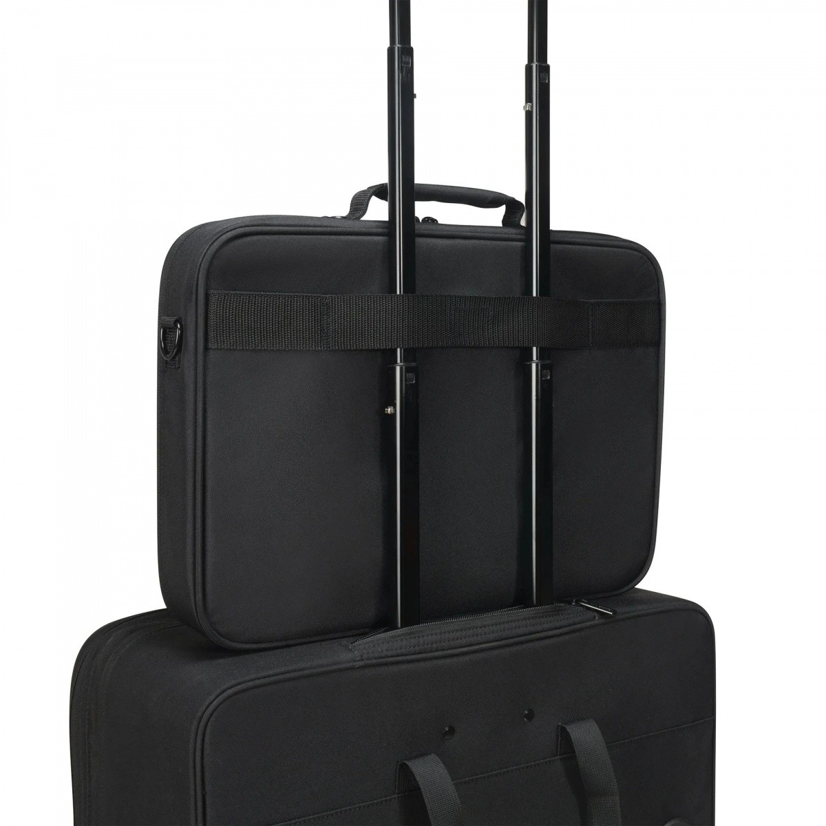 - Comfortabel dragen dankzij stevige handgrepen, een schouderriem en een band voor bevestiging aan een koffer.