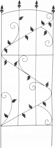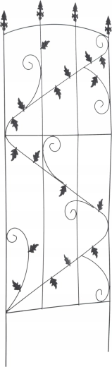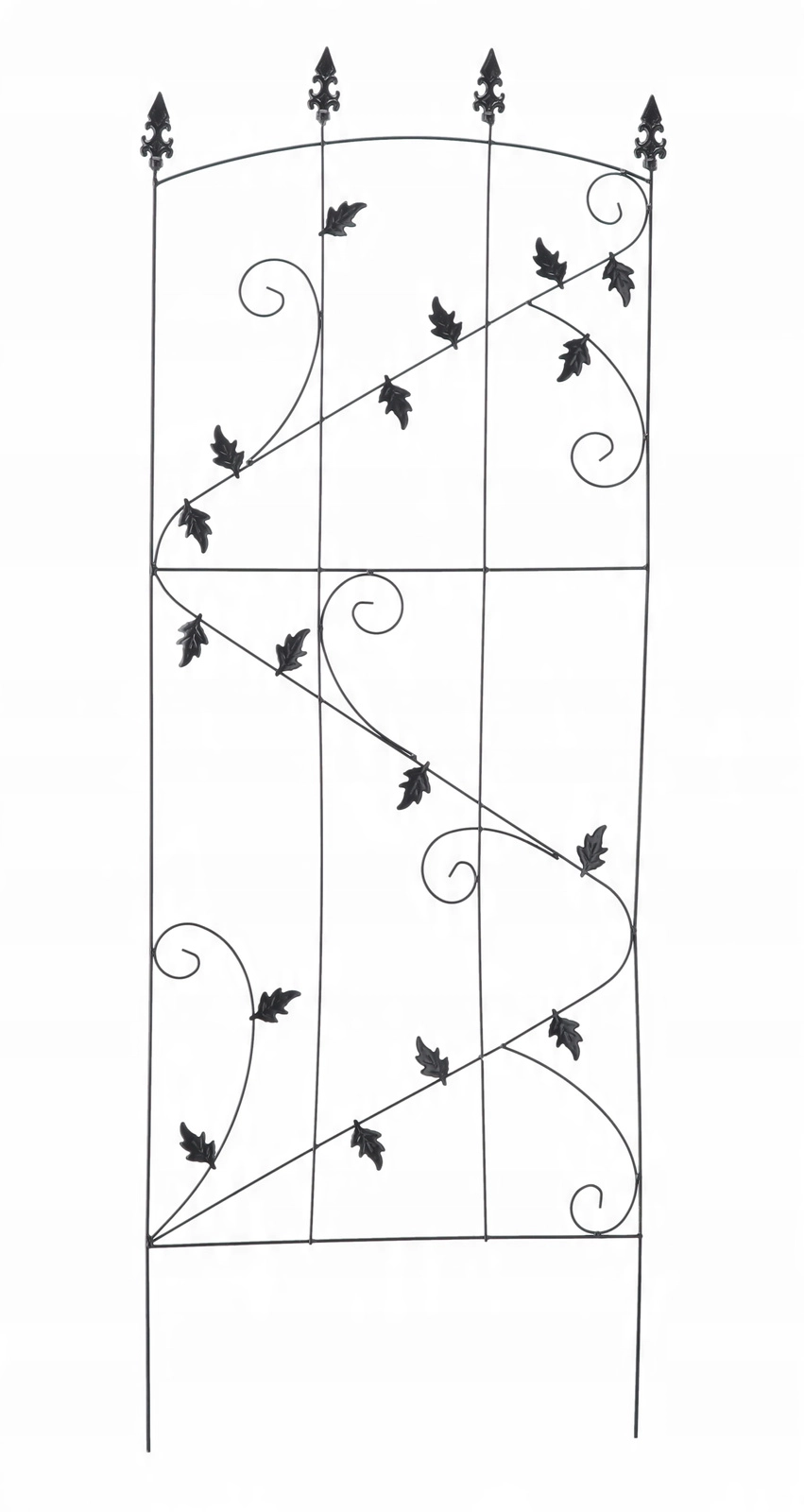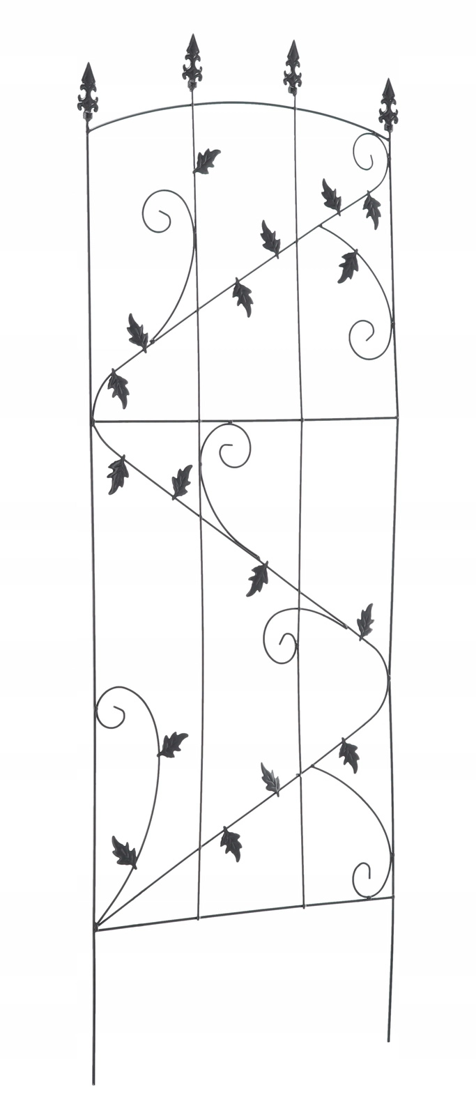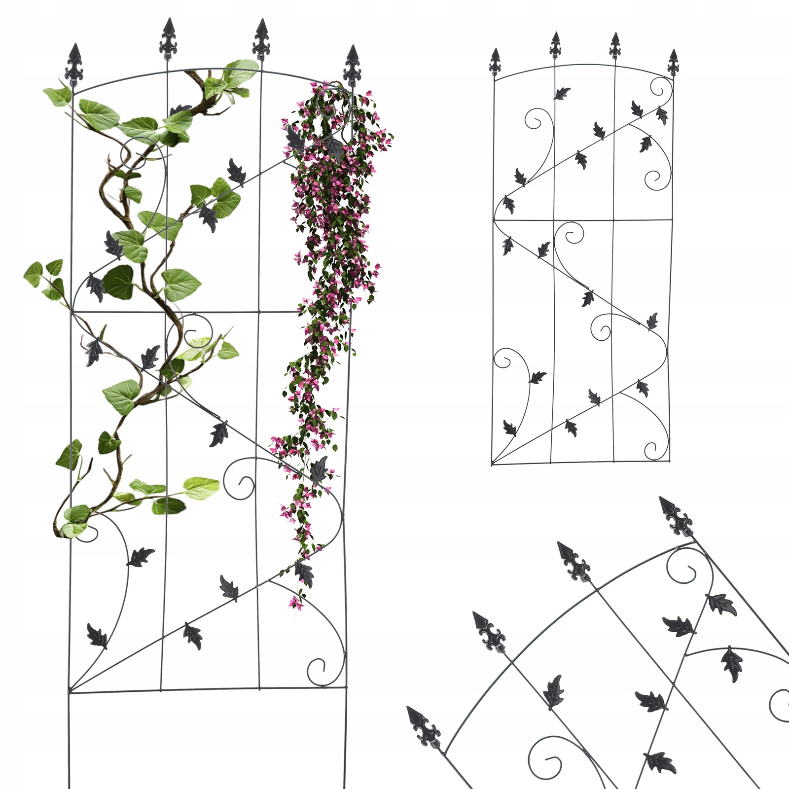 Dit stijlvolle tuinscherm biedt betrouwbare steun aan klimplanten zoals rozen, clematis of klimop. De metalen constructie in het zwart is stabiel, sterk en bestand tegen buitenomstandigheden, terwijl de elegante versiering je ruimte een representatieve uitstraling geeft.