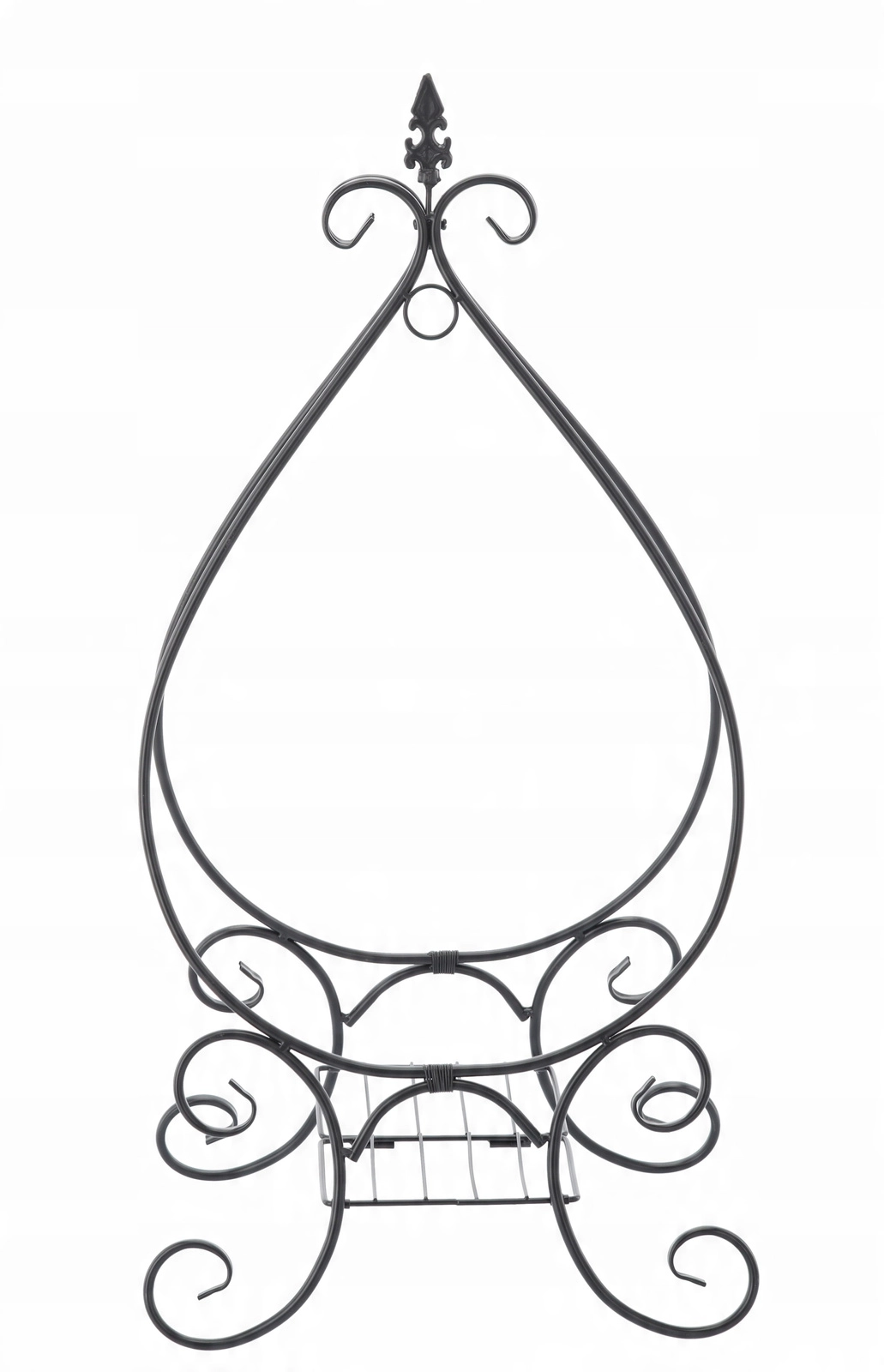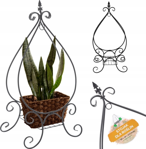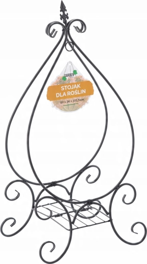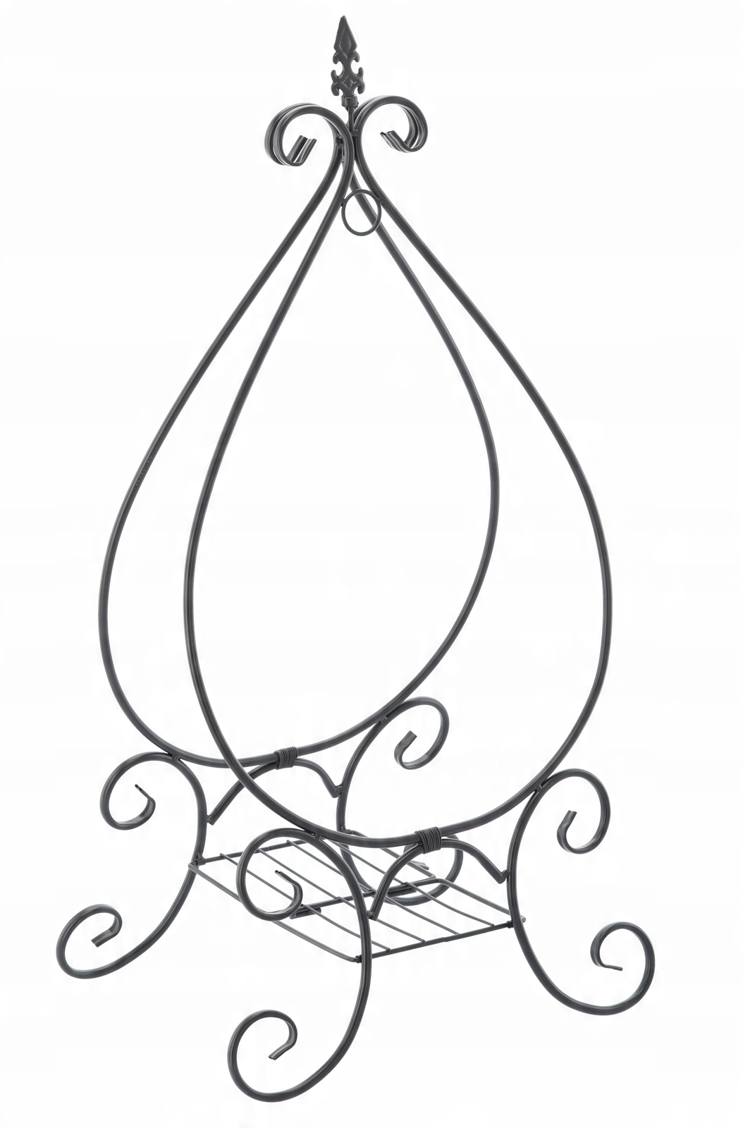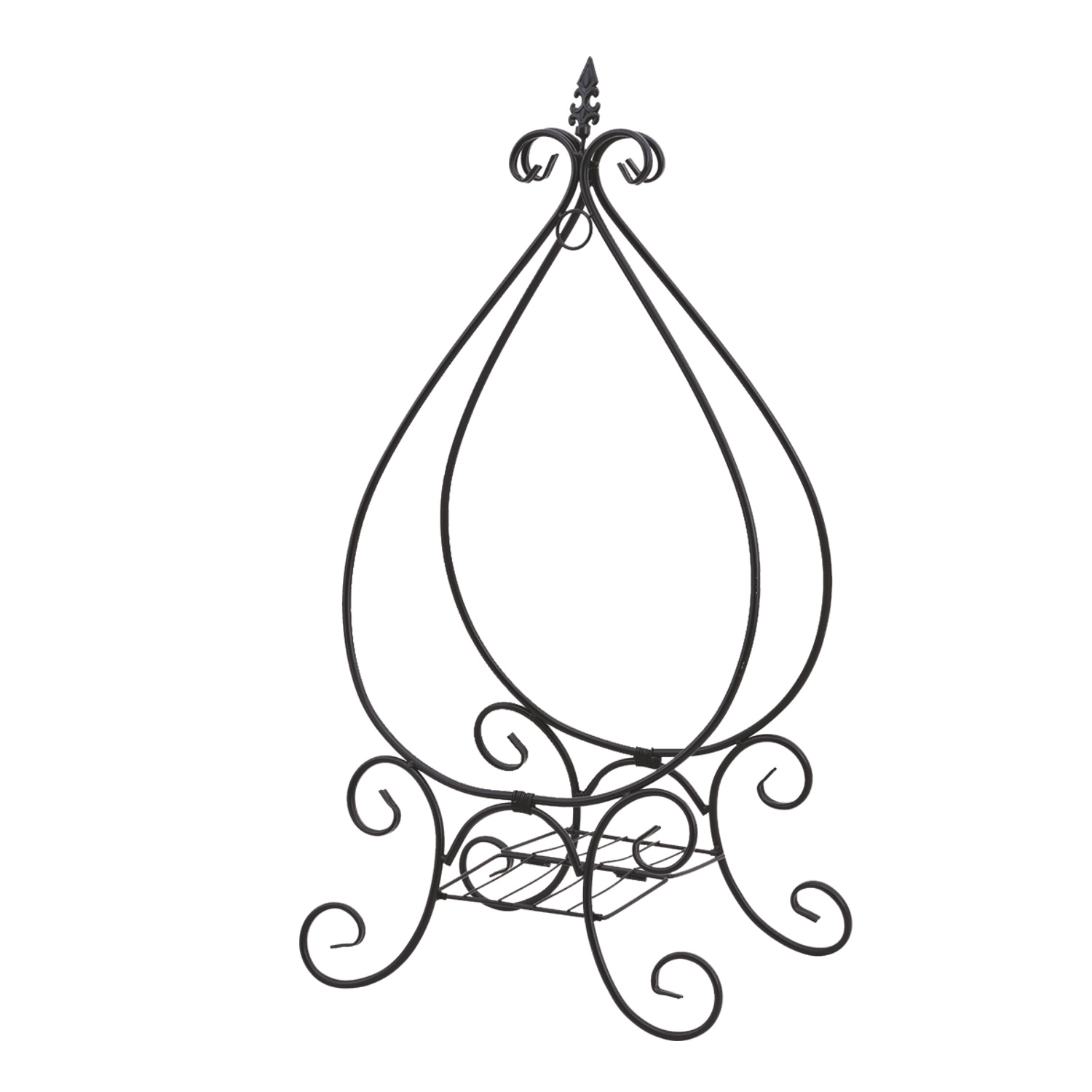 Deze decoratieve plantenstandaard met druppelvormig frame en sierlijk smeedwerk benadrukt de schoonheid van uw bloemen en accessoires. Duurzaam staal staat garant voor een lange levensduur en de stabiele ondersteuning beschermt bloempotten tegen omvallen. Geschikt voor zowel binnen als buiten.