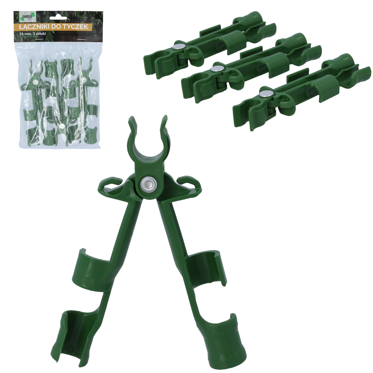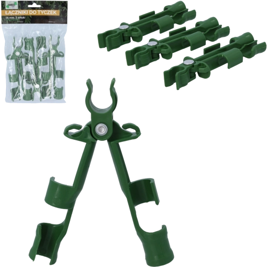 Praktische set van drie tuinverbinders voor steunstokken met een diameter van 16 mm zorgt voor een stevige verbinding en stabiele plantenondersteuning. Duurzame kunststof is licht, weerbestendig en maakt eenvoudige montage zonder gereedschap mogelijk voor het snel bouwen van roosters, frames en steunen.