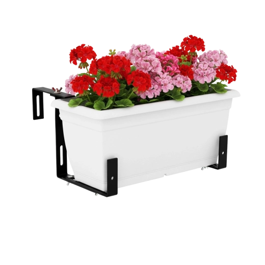 De robuuste metalen houder houdt bloempotten stevig op hun plek, ook bij wind. Ideaal voor leuningen van balkons en terrassen.