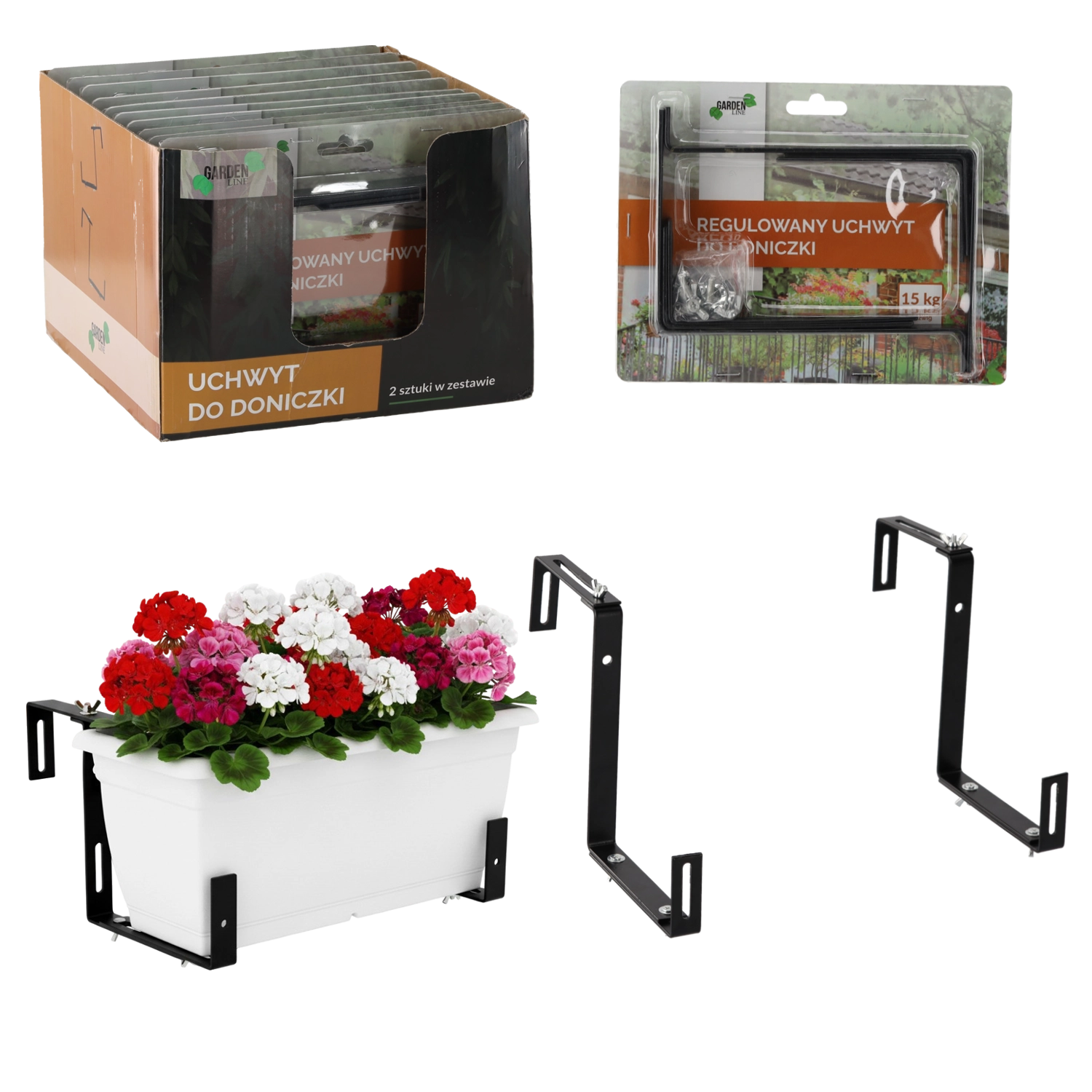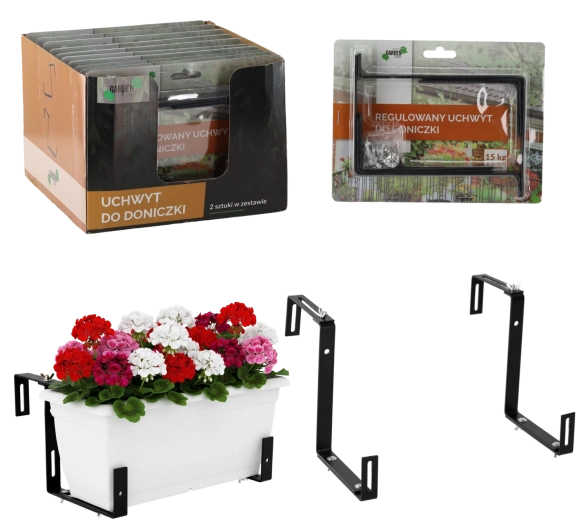 Praktische set van twee verstelbare bloempot-houders voor veilige bevestiging aan balkon, terras of leuning. Dankzij de universele klembreedte passen ze eenvoudig op verschillende typen leuningen. De stevige metalen constructie en doordacht design zorgen voor stabiliteit, lange levensduur en een elegante uitstraling van je buitenruimte. Eenvoudige montage zonder speciaal gereedschap.