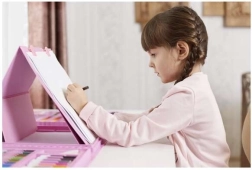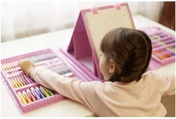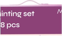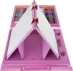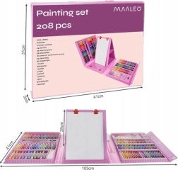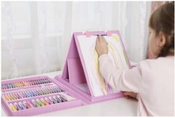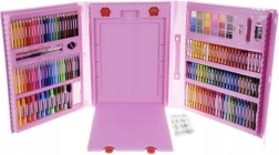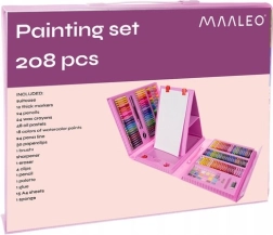 De set bevat 208 stuks, inclusief stiften, pastel- en waskrijtjes, aquarelverf en veel andere benodigheden.