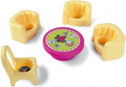De set bevat uitgebreide accessoires en een stickervel om het interieur af te werken. Kinderen kunnen het huisje eenvoudig naar wens aanpassen.