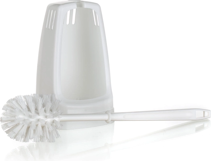 Deze witte WC-set combineert een eenvoudig design met functionaliteit. De vierkante kunststof houder is stabiel en onopvallend, terwijl de borstel met synthetische vezels effectief vuil verwijdert en het regelmatig onderhoud van het toilet vergemakkelijkt.