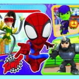 Ontdek de kleurrijke wereld van superhelden met de 4-in-1 puzzelset met motieven van Spidey en zijn vrienden. Elke van de vier puzzels heeft een verschillend aantal stukjes, zodat kinderen hun vaardigheid en zelfvertrouwen stap voor stap kunnen vergroten. Na het leggen ontstaan vier afbeeldingen met afmetingen 285 × 205 mm, ideaal voor kinderhanden.