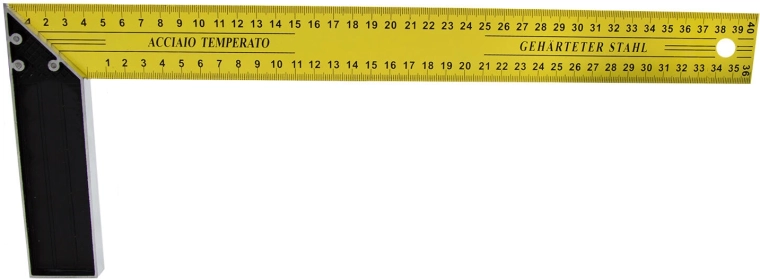 Betrouwbare houtbewerkershaak 400 mm, ideaal voor houtbewerking, montage en controle van rechte hoeken. De stalen liniaal en de gelakte meetarm met mm-schaal garanderen nauwkeurigheid en lange levensduur.