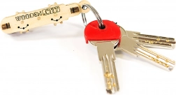 Lichte houten hanger met opening voor een sleutelhanger – draai aan het ene wiel en het andere draait vanzelf mee. Een stijlvolle accessoire voor sleutelbos of rugzak.