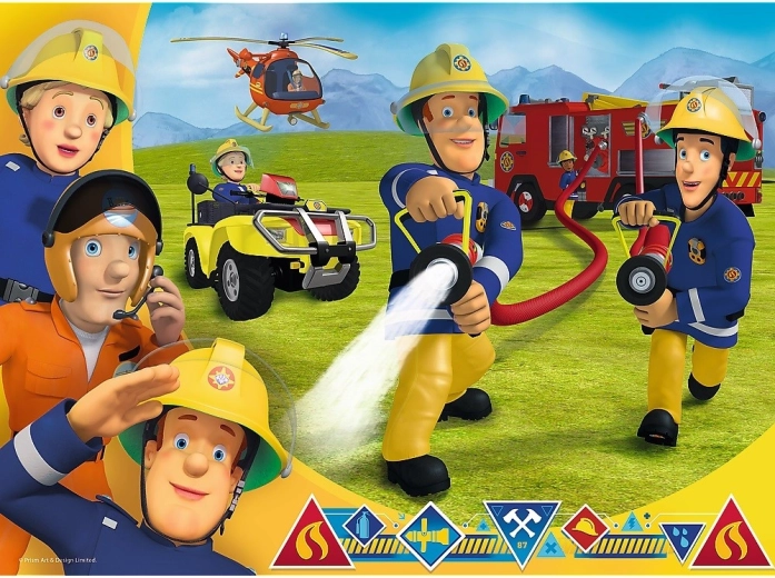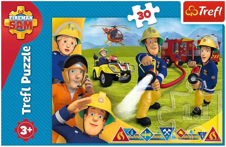 Puzzel 30 stukjes met geliefde personages uit de tekenfilm Brandweerman Sam biedt plezier en vaardighedenontwikkeling. Na het samenstellen vormt het een afbeelding van 20x27 cm met hoge kwaliteit en rijke kleuren.
