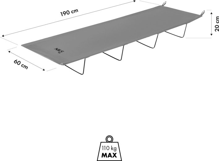 Het lichte en duurzame opvouwbare bed van NILS Camp biedt een stabiele stalen constructie, een ademende 600D Oxford-bekleding en compacte afmetingen na het opvouwen voor eenvoudig vervoer. Ideaal voor kamperen, festivals, de tuin en als noodbed thuis. Draagvermogen 120 kg en afmetingen 190 × 60 × 20,5 cm zorgen voor een comfortabele nachtrust buitenshuis.