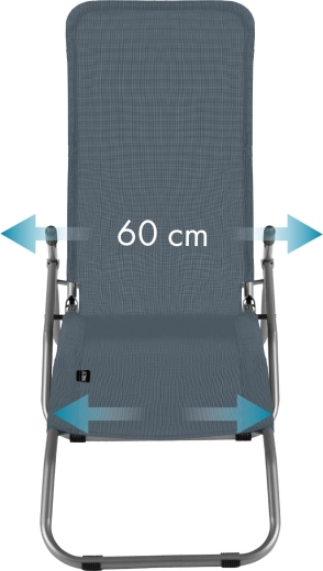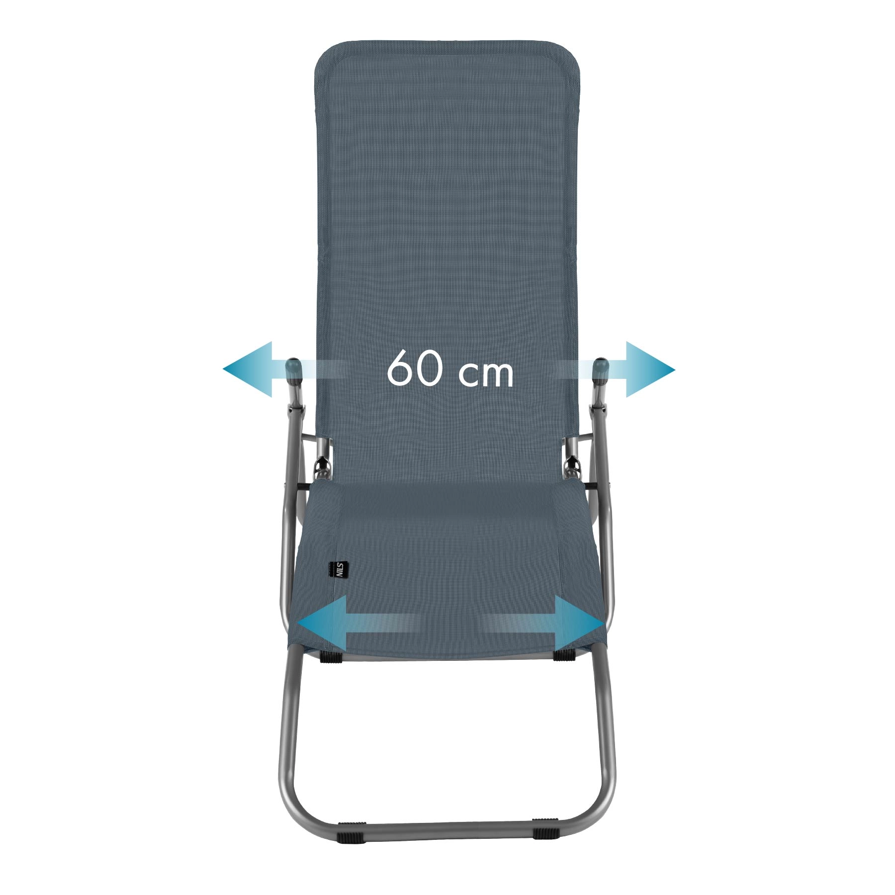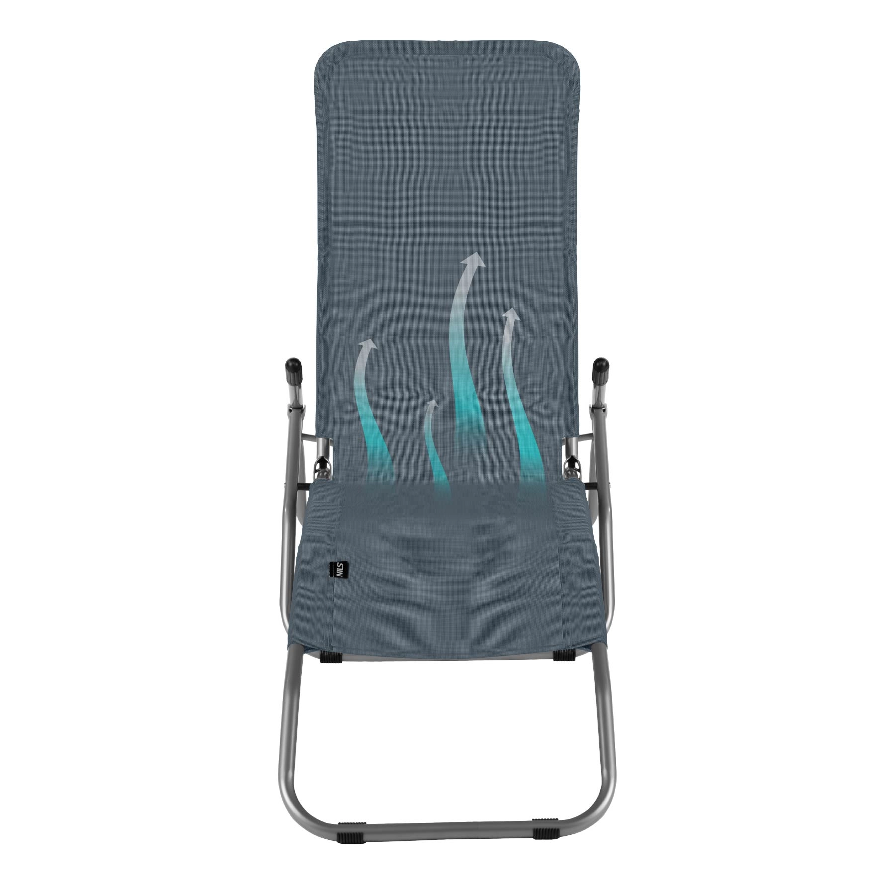 Dankzij de traploze hoekverstelling ga je eenvoudig van zitten naar liggen door simpelweg je zwaartepunt te verplaatsen. De ademende structuur van het materiaal bevordert de luchtcirculatie en vergroot het comfort bij warm weer. De constructie is opvouwbaar, zodat je het ligbed snel meeneemt op reis en overal kunt gebruiken.