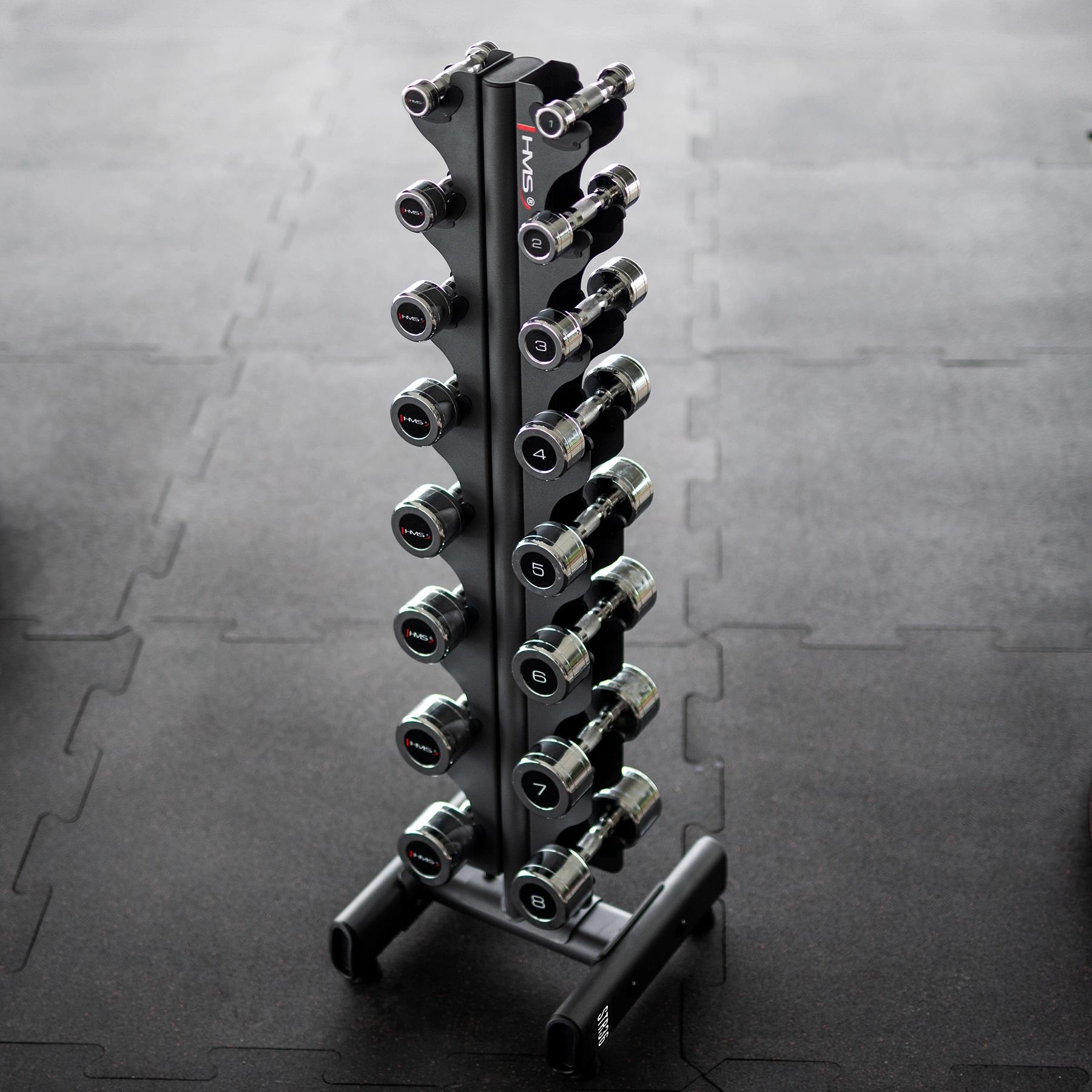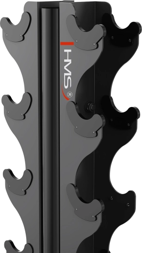 Breng orde in je trainingszone met de HMS-dumbbellstandaard, die 8 paren halters kan herbergen in het bereik van ongeveer 1–8 kg. Dankzij het verticale, ruimtebesparende design is hij ideaal voor homegyms, boutique-studio’s en kleinere fitnesscentra.