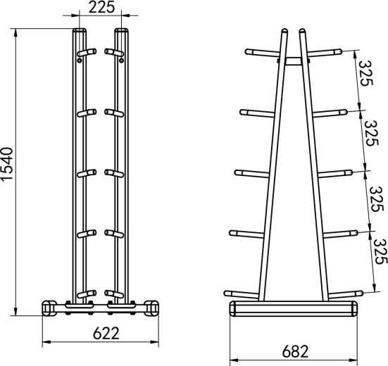 De standaard biedt een capaciteit tot 10 stuks uitrusting met uiteenlopende gewichten en diameters. Antislipvoetjes beschermen de vloer en vergroten de zekerheid tijdens het hanteren. Het is een universele oplossing voor commerciële ruimtes en homegyms, waar orde en veiligheid voorop staan.