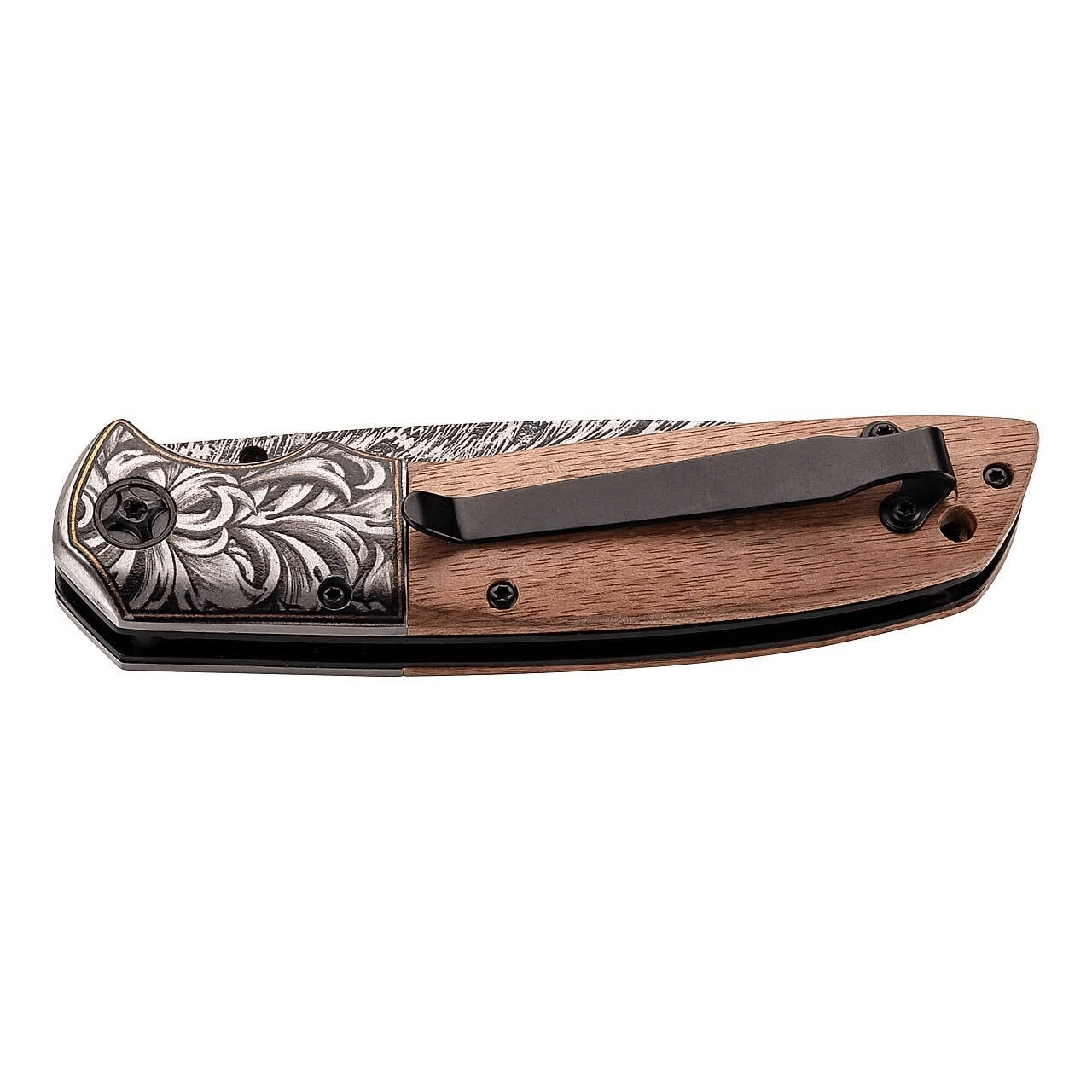 Elegante zakmes HERBERTZ voor dagelijks gebruik of als stijlvol cadeau. Voorzien van een AISI 420 roestvrijstalen lemmet met gegraveerd bloemenmotief, comfortabele opening met duimpin en een veilige Linerlock-vergrendeling. De handgreep van walnoothout ligt prettig in de hand, met een broekclip voor rechtsdragend gebruik en een koordoog.