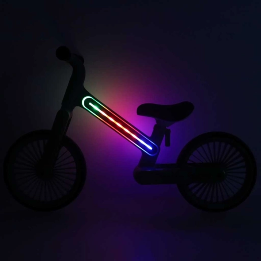 Stijlvolle kinderloopfiets TRIKE FIX GLOW met verlicht LED-frame en tot 20 lichtstanden voor betere zichtbaarheid en extra plezier. Dankzij het lichte nylon frame, de EVA-wielen en het ergonomische zadel trainen kinderen op een natuurlijke manier balans en coördinatie zonder stress en zonder zijwieltjes. De verstelbare zadelhoogte past zich perfect aan de groei van het kind aan.