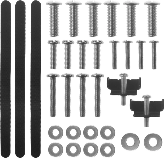 Verstelbare VESA-beugels met meerdere montagegaten en een uitgebreide set schroeven, afstandsbusjes en kabelbinders maken de installatie eenvoudig.