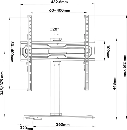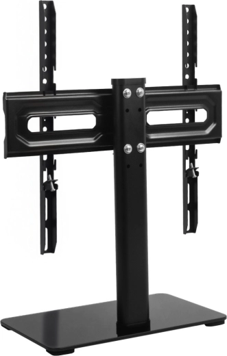 De brede en zware basis met een centrale kolom houdt je tv veilig op het meubel en maakt wandmontage overbodig.