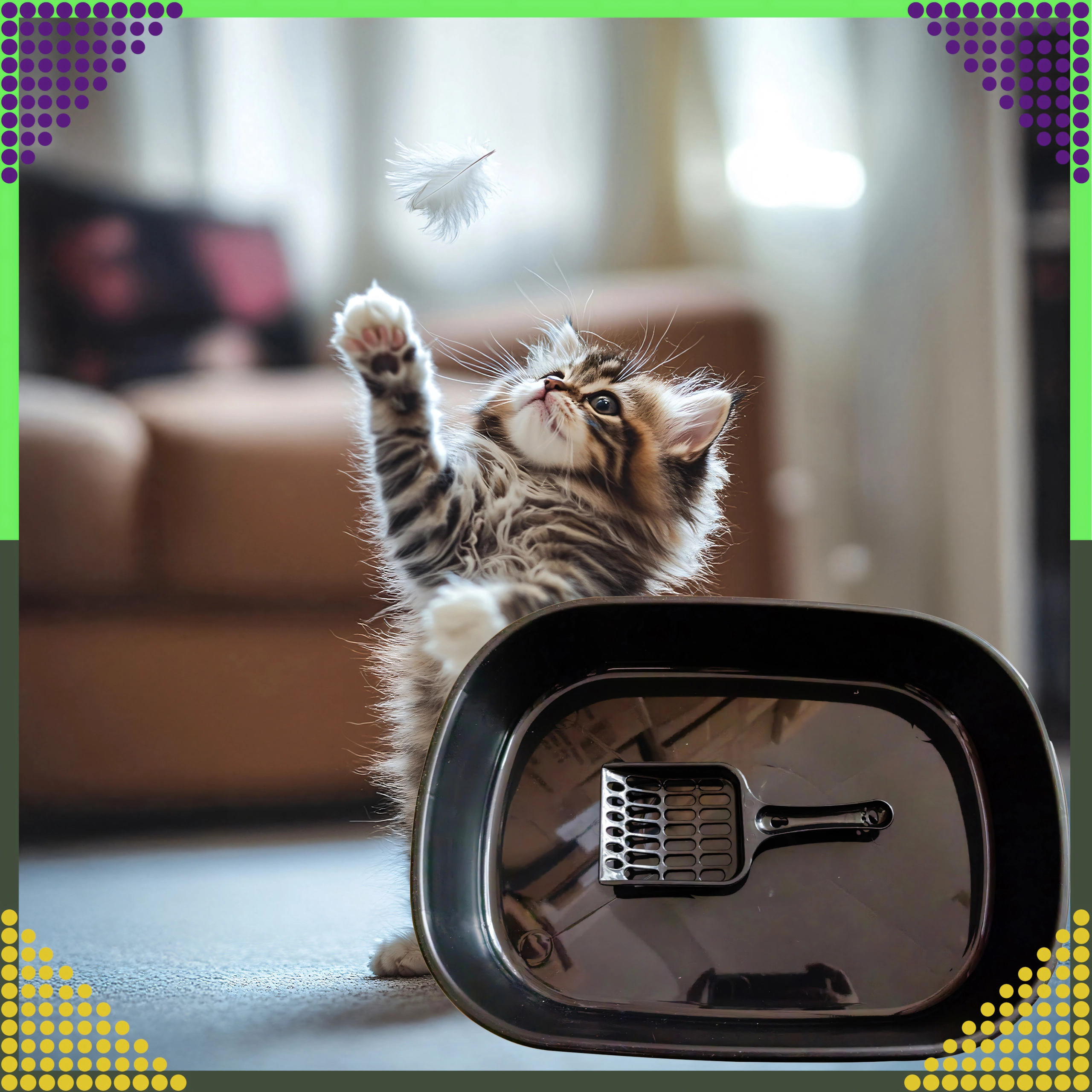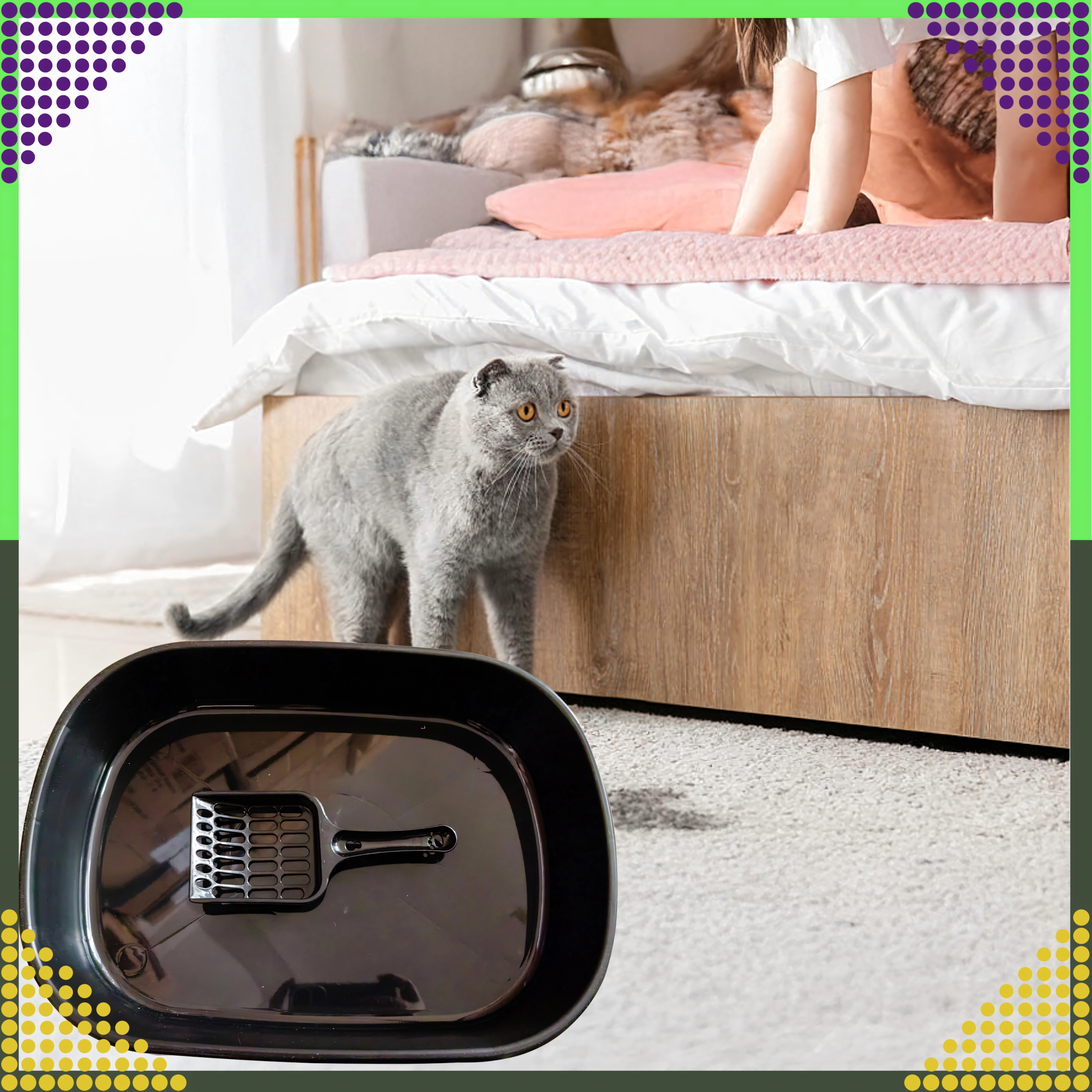 Het elliptische ontwerp en de afgeronde randen maken de instap voor de kat gemakkelijker en helpen de omgeving schoon te houden.